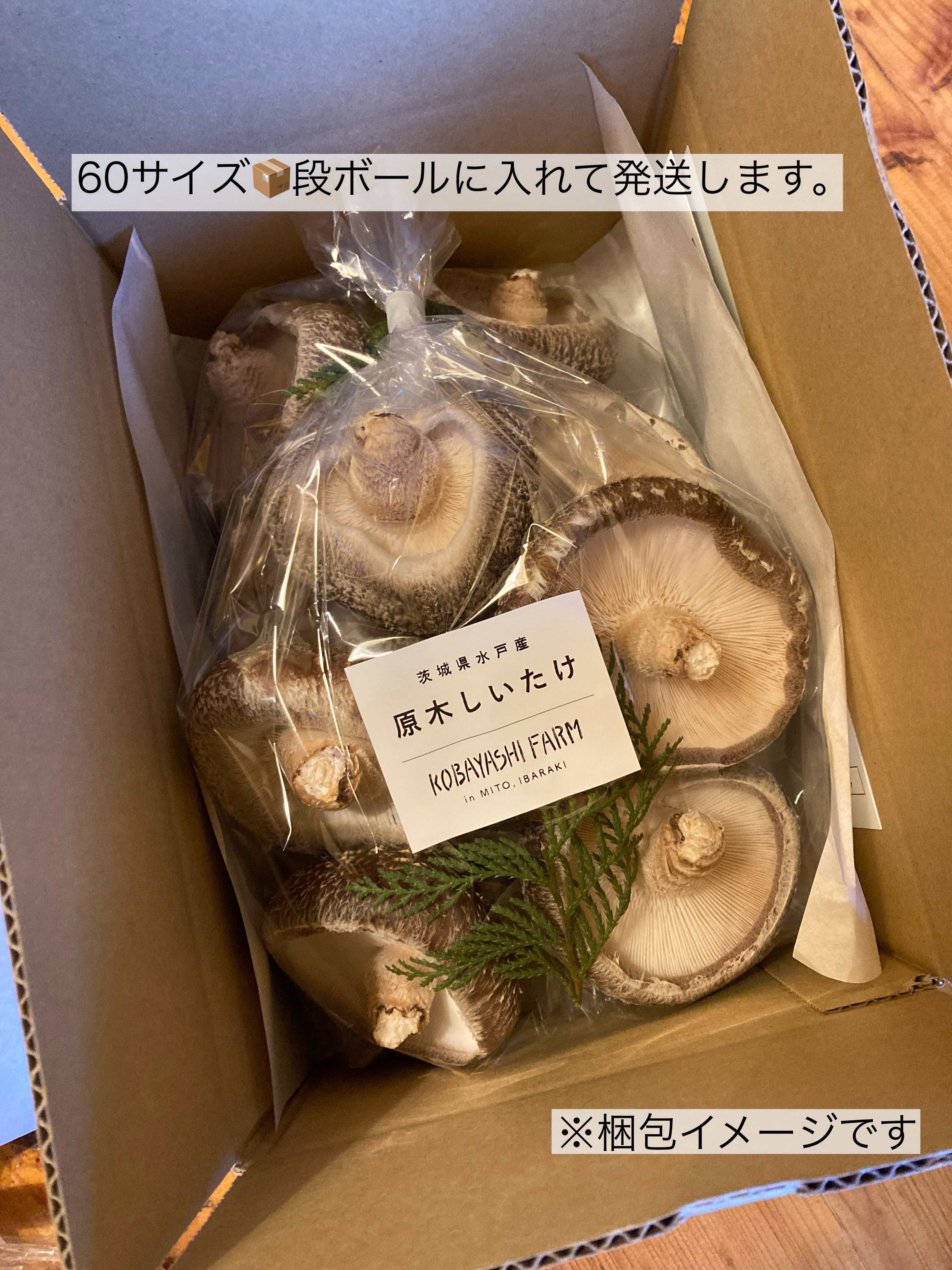 おまとめ便の目安量は、しいたけ1個50g前後×20個程度です。